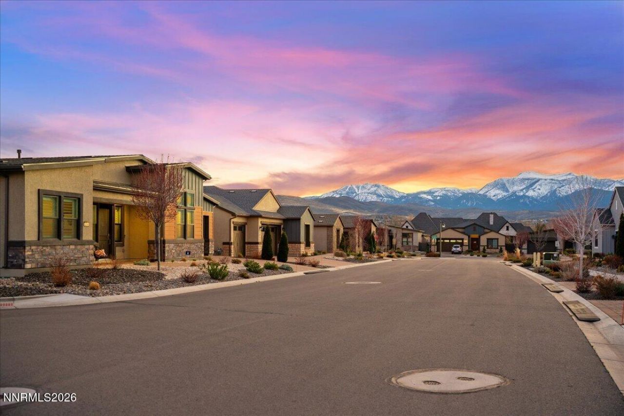 Luxury and lifestyle come together in this extensively upgraded Avalon model in the premier 55+ community of Regency at Caramella Ranch. Designed for both comfort and entertaining, this thoughtfully crafted 2,428 sq ft home features the popular dual primary suite layout, a spacious great room, dedicated office/den, and gracious dining area perfect for hosting family and friends. The gourmet kitchen is a showstopper with a waterfall granite island, farmhouse sink, Wolf appliances, Bosch refrigerator, rich espresso cabinetry, pantry cabinets with pull-out drawers, and chic copper-lined black pendant lights. An additional workspace just off the kitchen adds convenience for everyday living or entertaining prep. The open great room flows seamlessly to the outdoor living space, ideal for gatherings of any size. The covered paver patio, built-in BBQ, and low-maintenance artificial turf invite effortless outdoor entertaining, while mountain views provide a serene backdrop. Each of the two primary suites offers a private retreat with spa-inspired baths featuring granite countertops, large walk-in showers, and built-in closets. Plantation shutters throughout, wood-look tile plank flooring in the main living areas, new carpet in the bedrooms, and ceiling fans in the great room, bedrooms, and patio enhance both style and comfort. Additional highlights include a finished garage with epoxy flooring, insulated garage door, and overhead storage racks, plus side yard access on both sides of the home. Residents of Regency at Caramella Ranch enjoy a true resort lifestyle with a stunning clubhouse, indoor and outdoor saltwater pools and spa, state-of-the-art fitness center, pickleball courts, outdoor amphitheater, and a vibrant calendar of clubs, classes, and social events - all creating an unparalleled 55+ living experience in South Reno.